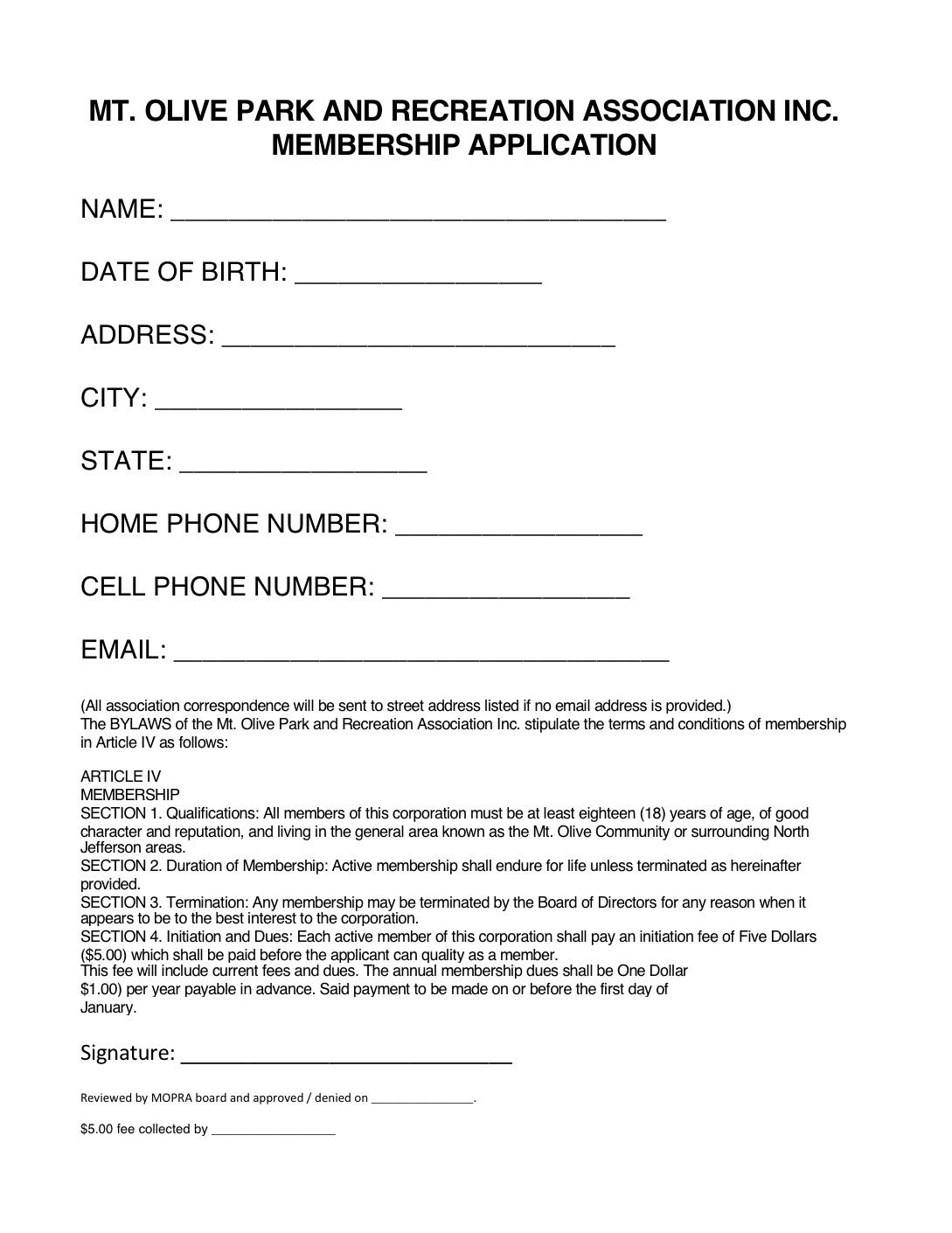 Please save the membership form listed here and return to us via postage mail or to MountOliveBallpark@gmail.com.